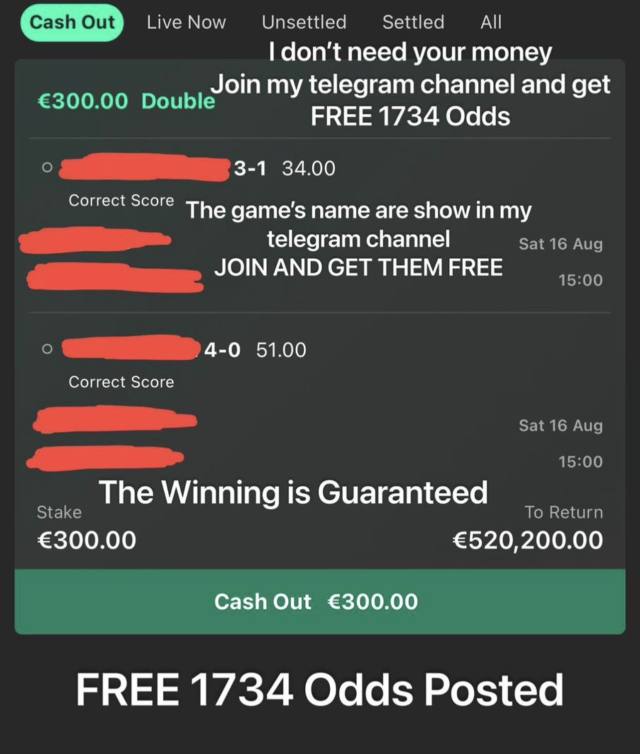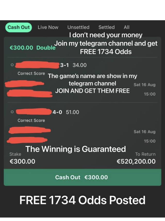 Tritt meinem Telegram-Kanal bei und erhalte 1734 Quoten KOSTENLOS – ganz ohne Zahlung. WhatsApp-